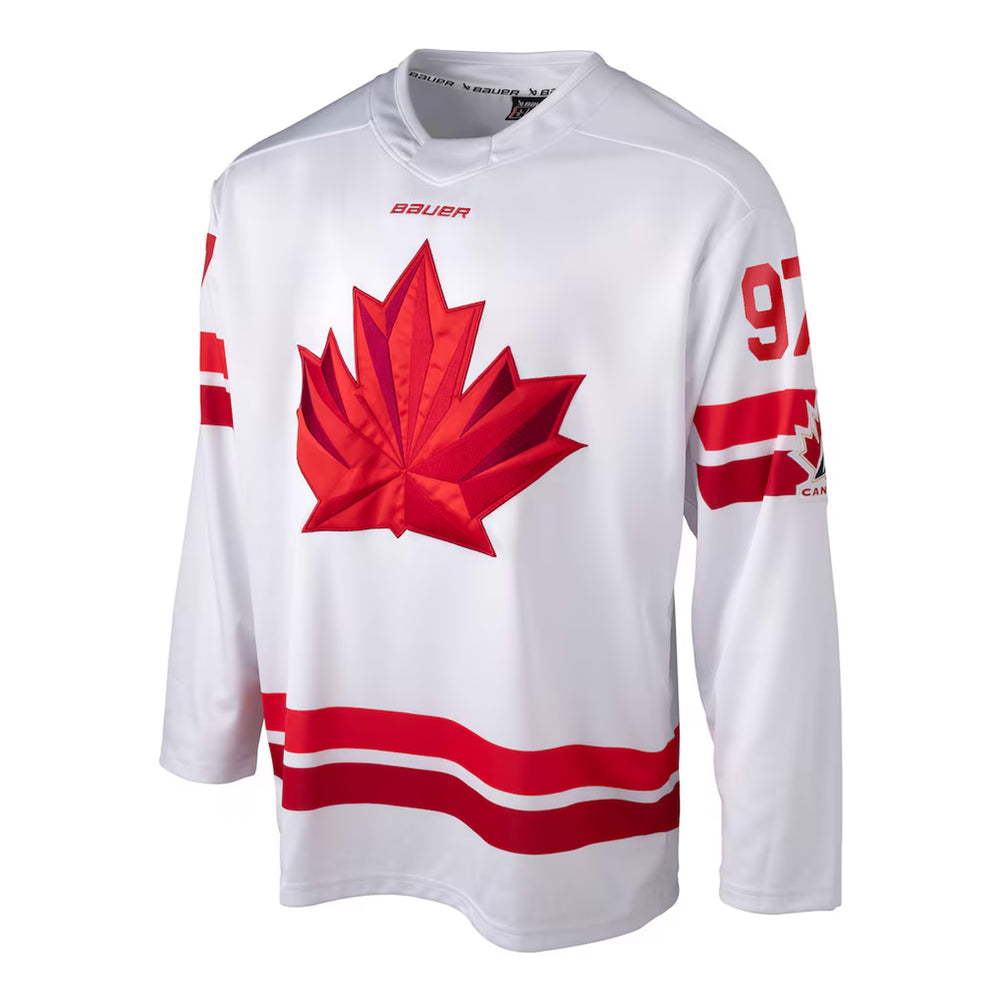 Cheer on Canada in a jersey inspired by what they’ll wear on the international stage. Featuring a black and red design and the iconic Hockey Canada® maple leaf, every thread on this replica jersey puts your team pride on full display.