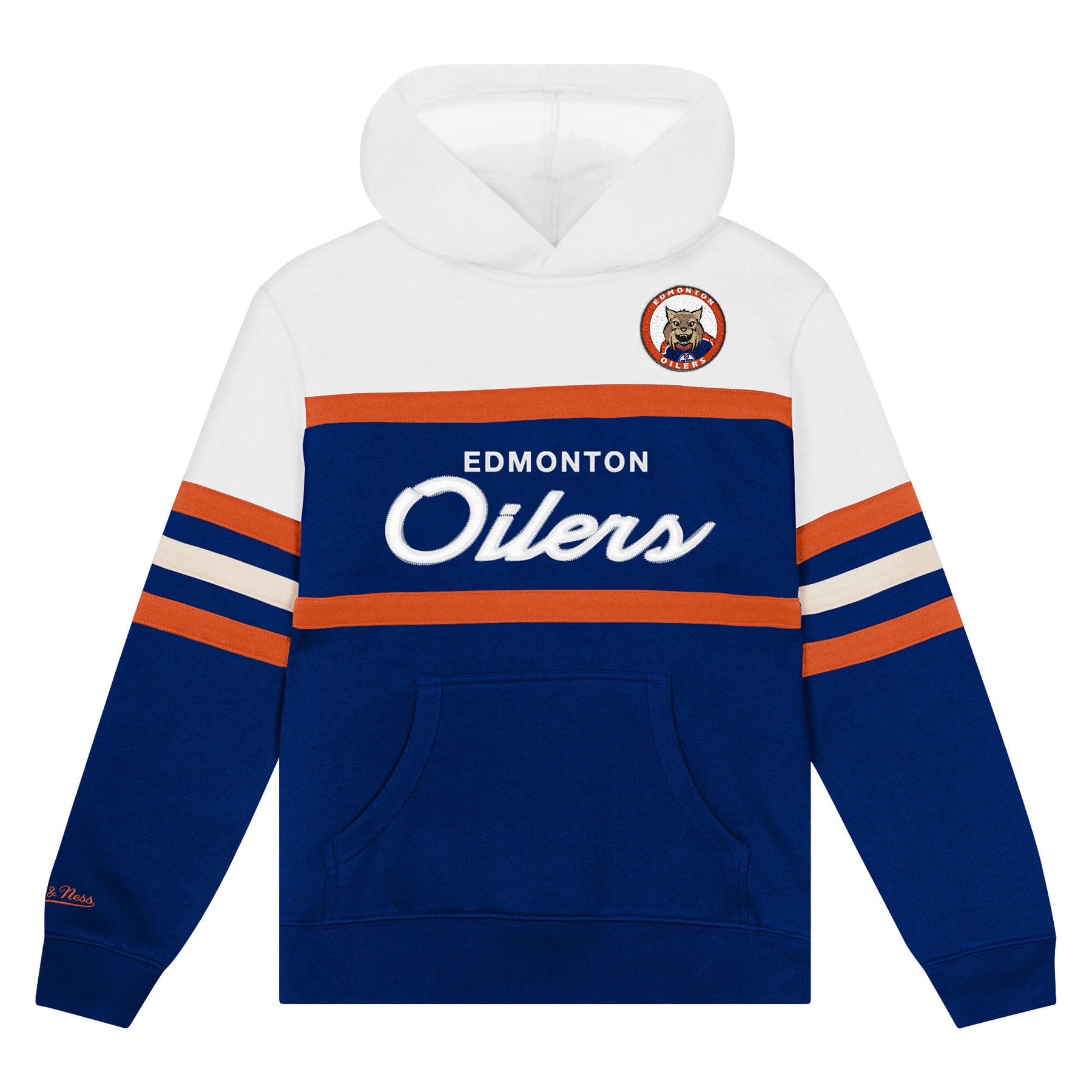 Introduce your young Oilers fan to authentic team spirit with this Toddler Mitchell & Ness White & Navy Mascot Coach Hoodie! The iconic Edmonton Oilers mascot and white and navy colorways make it a standout addition to any toddler's wardrobe!