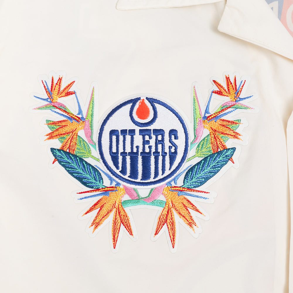 Elevate your Oilers pride with this Pro Standard Birds of Paradise Cream Button Up Shirt! Featuring a vibrant floral design, this versatile piece transitions seamlessly from casual outings to game day!