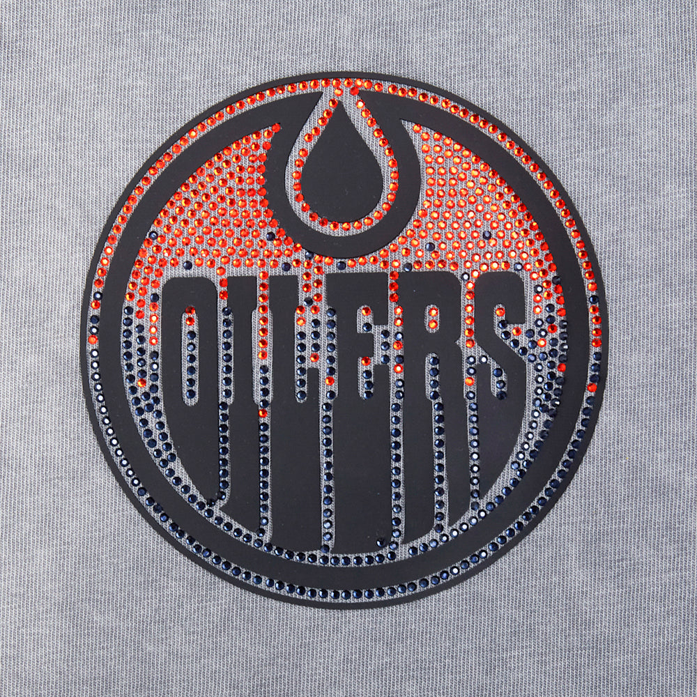 Celebrate your Edmonton Oilers pride in this Pro Standard Jewels Enzyme Wash Grey Boxy Cropped T-Shirt! Featuring enzyme wash grey fabric and glittery jewels, this t-shirt is perfect for layering or wearing solo. An ideal choice for game days or everyday wear!