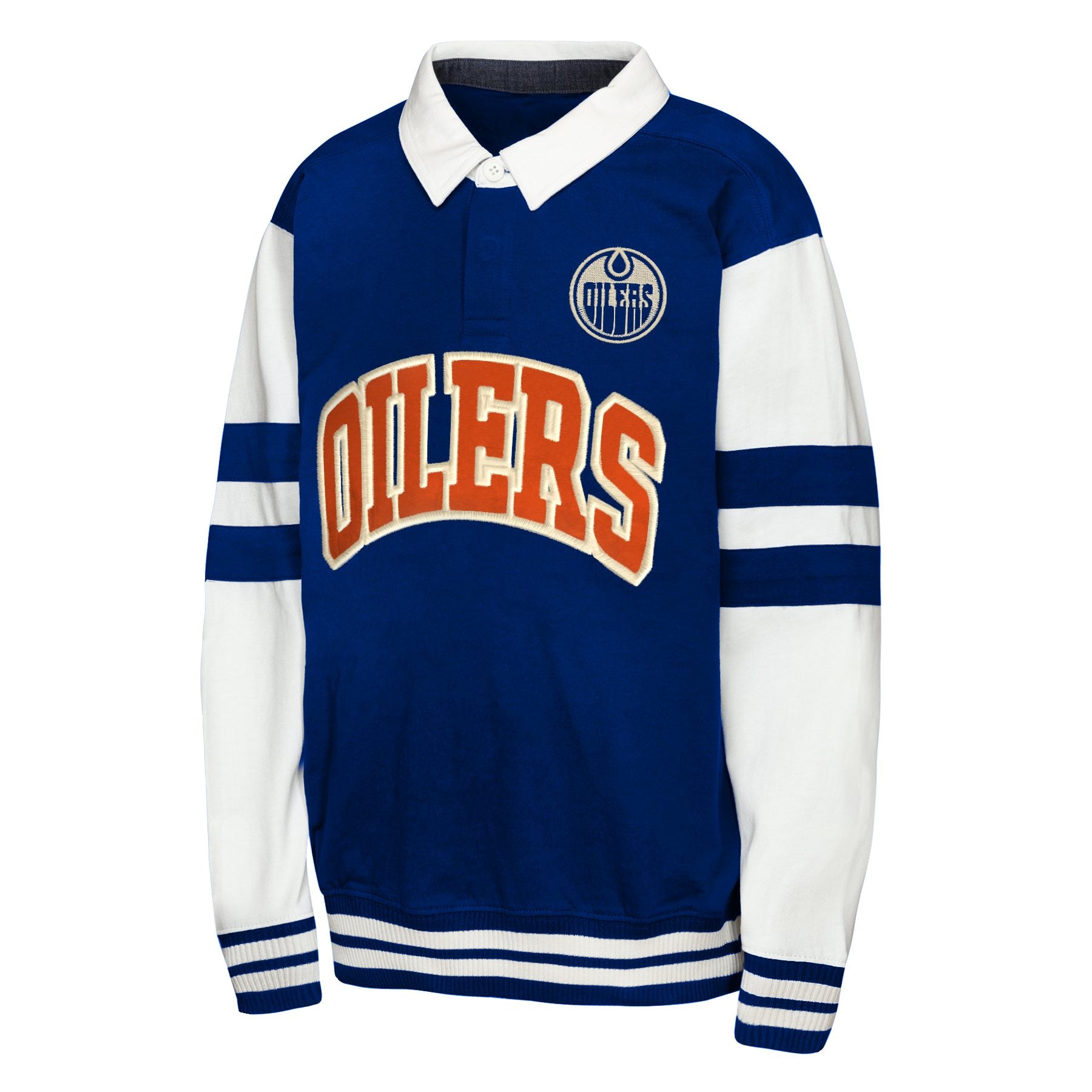 Edmonton Oilers Youth Outerstuff Fielder MVP Fashion Collar Blue Crewneck Sweatshirt