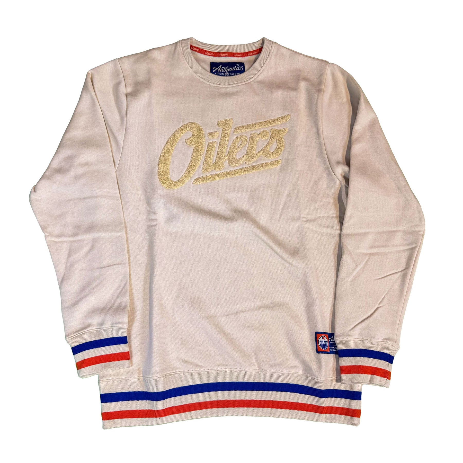 Edmonton Oilers Unisex Authentics Alternate Logo Cream Rib Cuff Crewneck Sweatshirt