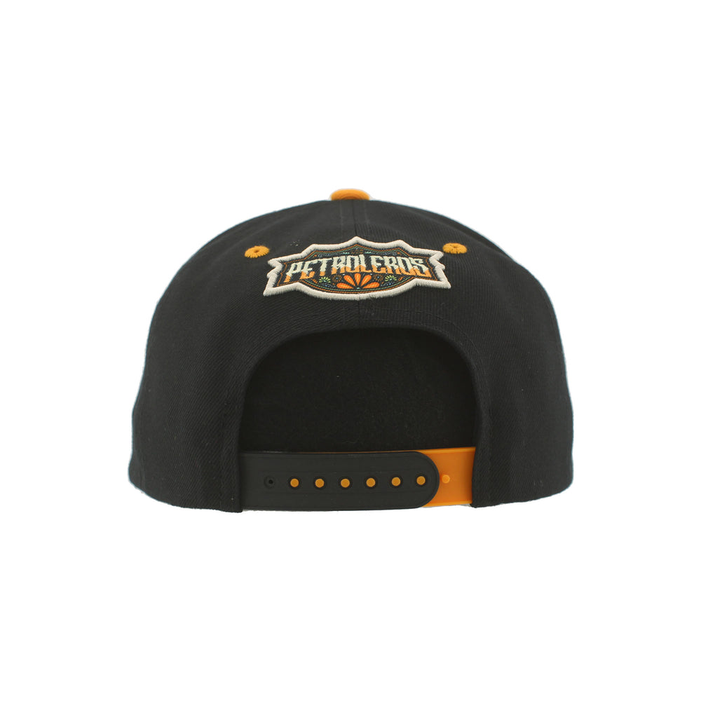 "The main crest is flanked on the left shoulder of the jersey by our friend Hunter the Lynx, who adorns a quetzal feathered headdress once worn by those in high power, along with their deities, within ancient Aztec civilization. The 'Petroleros' logo sits upon the right shoulder adorned with bright sunflowers and marigolds which are highly symbolic of Mexico.