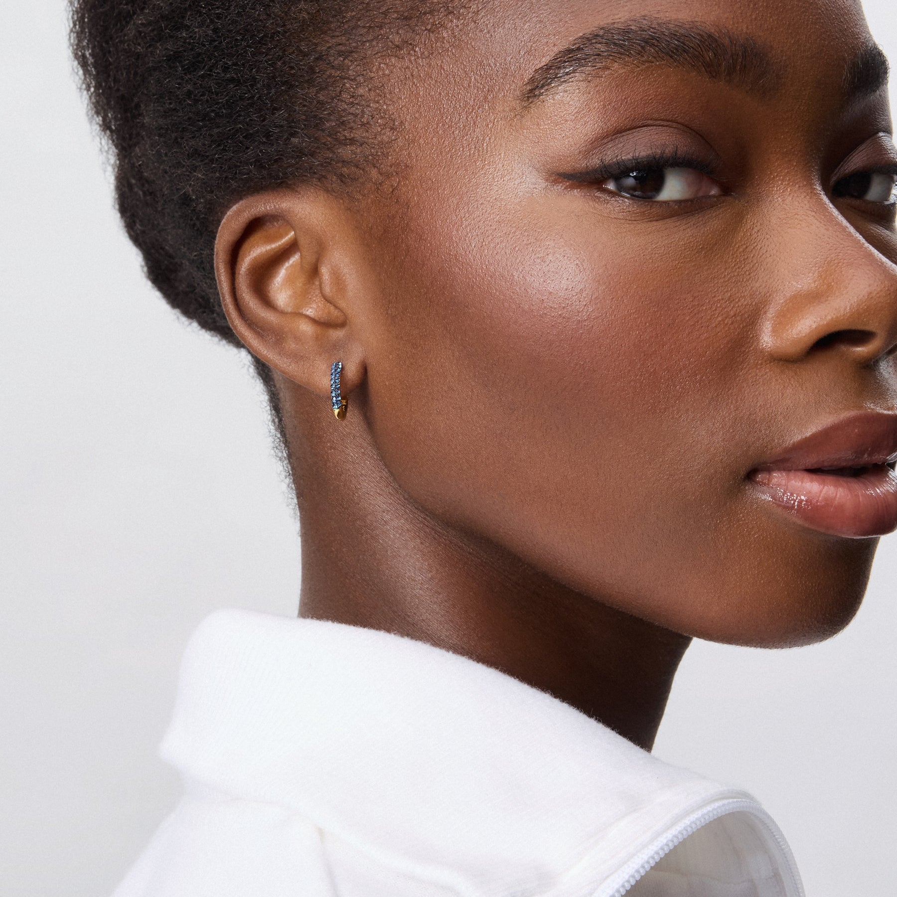 Classic Oilers colours play well with our iconic Always On Sparkle Hoop design. These reversible hoops allow you to seamlessly switch back and forth between sparkling Oilers blue or high-shine gold metal. A lightweight, narrow design keeps these earrings comfortable. Cheer as long as you want. Collectable packaging included.