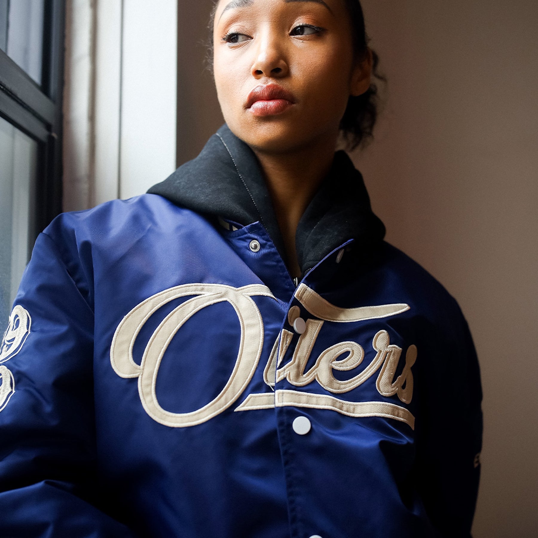 Edmonton Oilers Unisex Peace Collective Blue Vintage Bomber Jacket