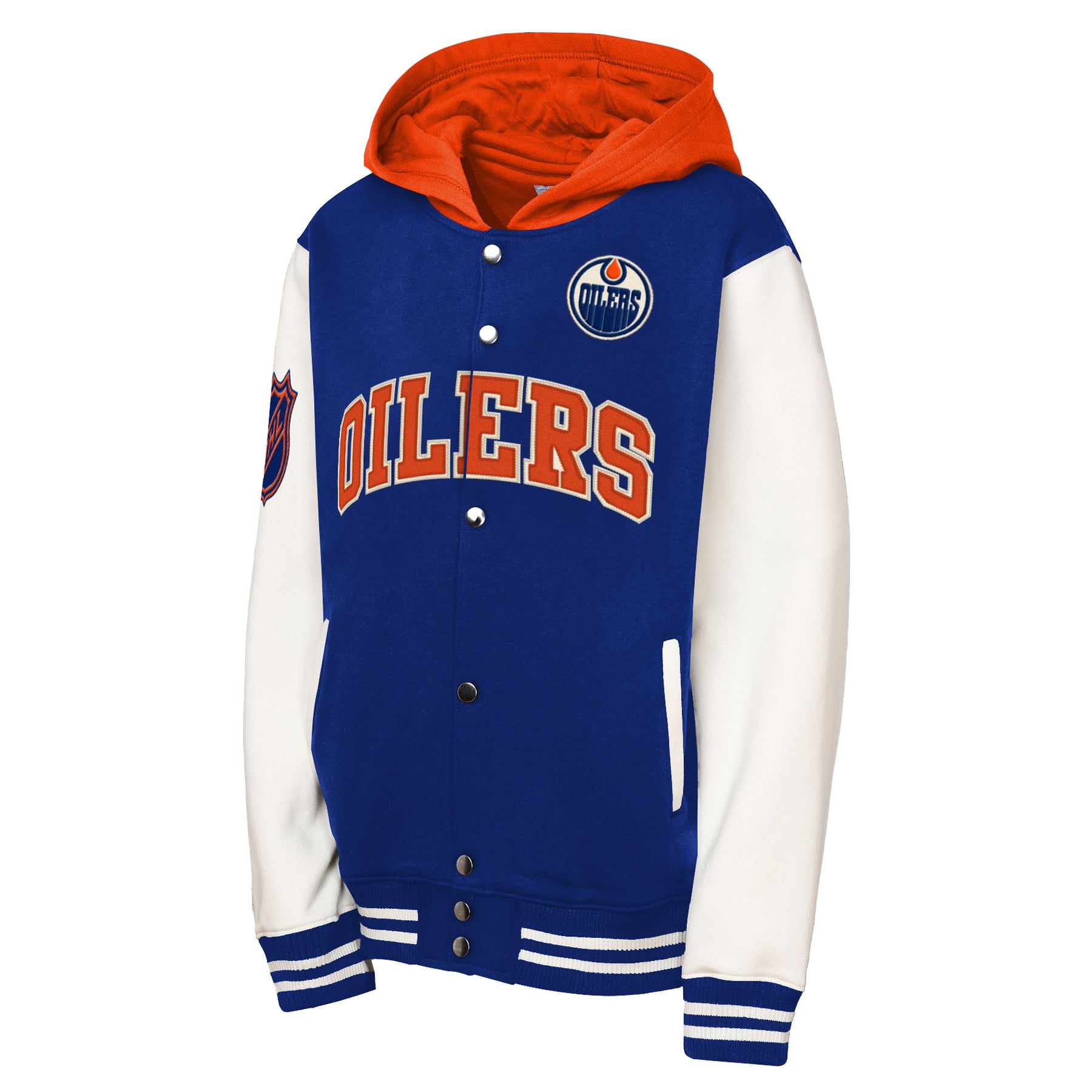 Give your young fan some vintage Edmonton Oilers style with this Edmonton Oilers Youth Mitchell & Ness Blue Court Side Fleece Jacket. This fleece jacket is perfect for mild game days, offering a stylish way to showcase your Edmonton Oilers pride. With its classic raglan sleeves and bold tackle twill appliqués, it delivers a vintage athletic look that never goes out of style.