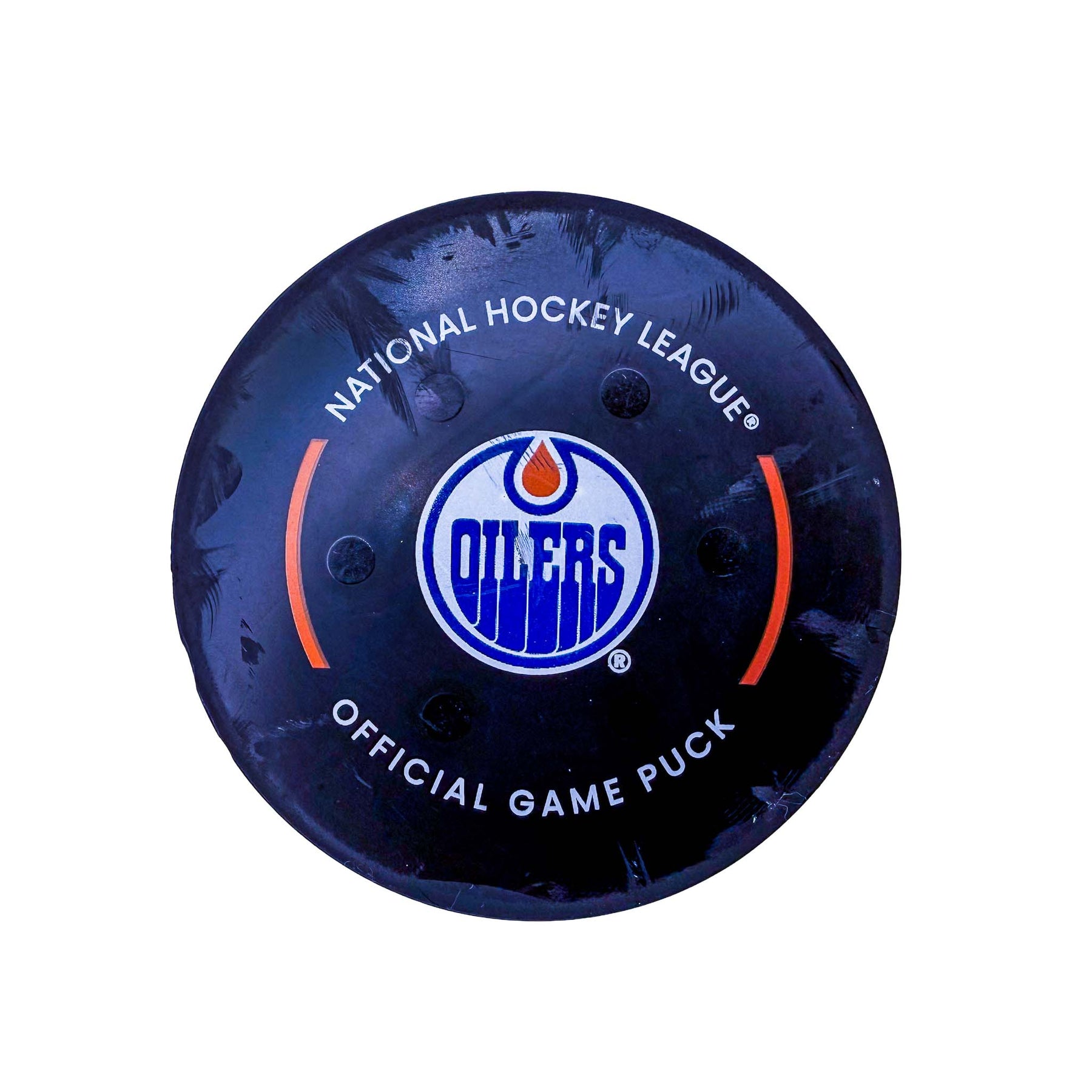 Each goal puck is game used and sold in "as-is" used condition. All game used items are final sale. Each game used puck will come complete in a puck cube with a tamper proof Edmonton Oilers Authentic Inventory Hologram applied to the back of the puck.