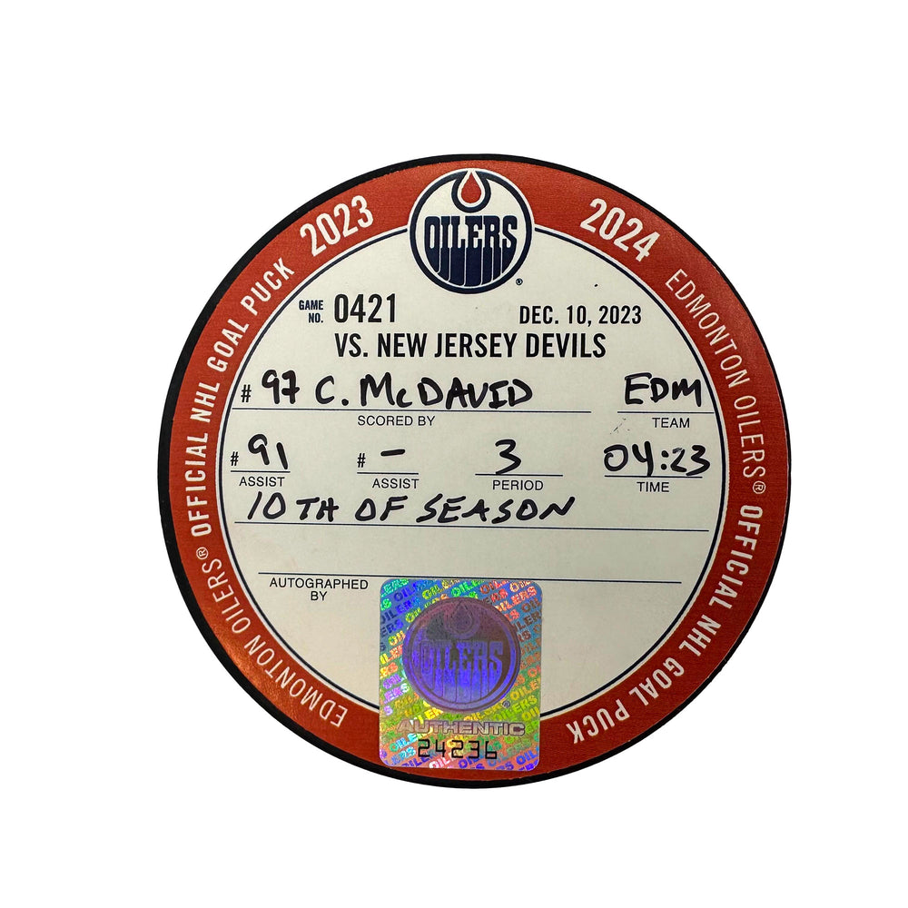 Connor McDavid Edmonton Oilers Goal Puck - Dec. 10/2023 vs New Jersey Devils #24236