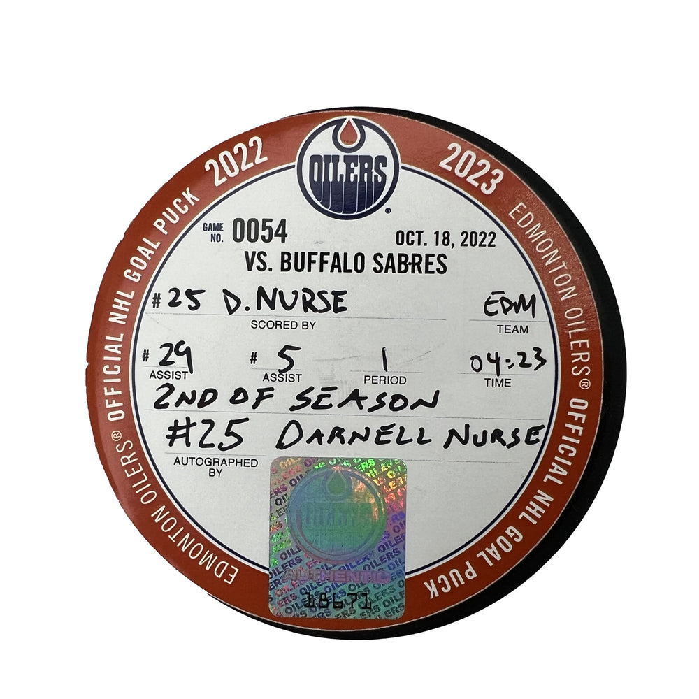 Darnell Nurse Edmonton Oilers Autographed Goal Puck - Oct. 18/2022 vs Buffalo Sabres #18671