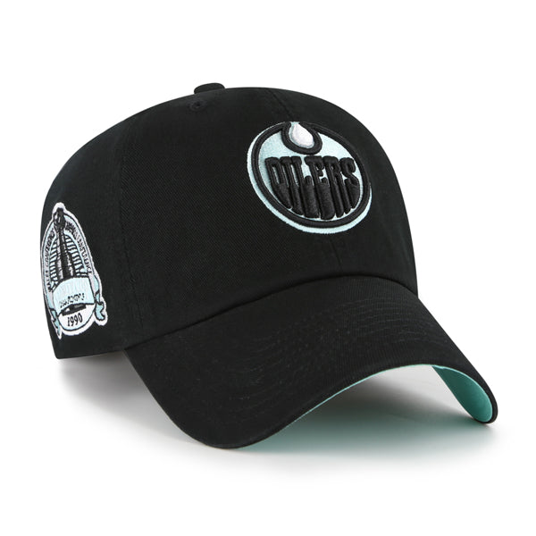 Get ready to show off your team spirit with the Edmonton Oilers '47 Black & Mint Clean Up Adjustable Hat! This hat combines black and mint colors with the iconic Oilers logo for a stylish look. Go Oilers!