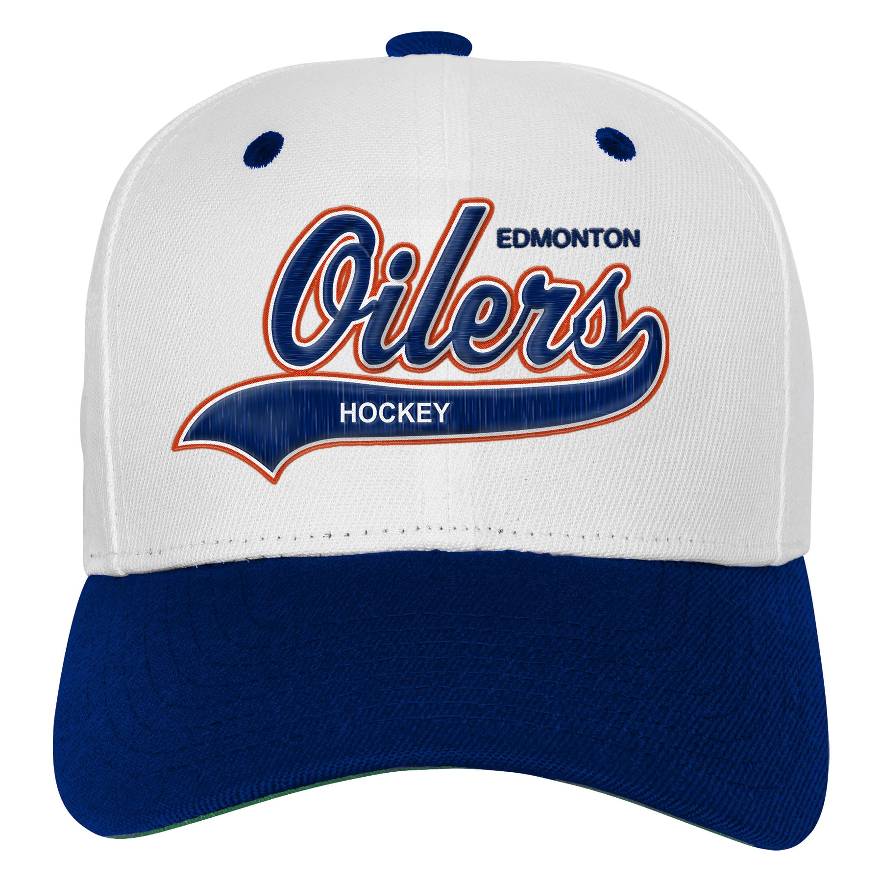 Get your young Edmonton Oilers fan ready for game day with this white & blue snapback hat! With a comfortable fit and adjustable snapback closure, your young fan will love cheering on their team in style!