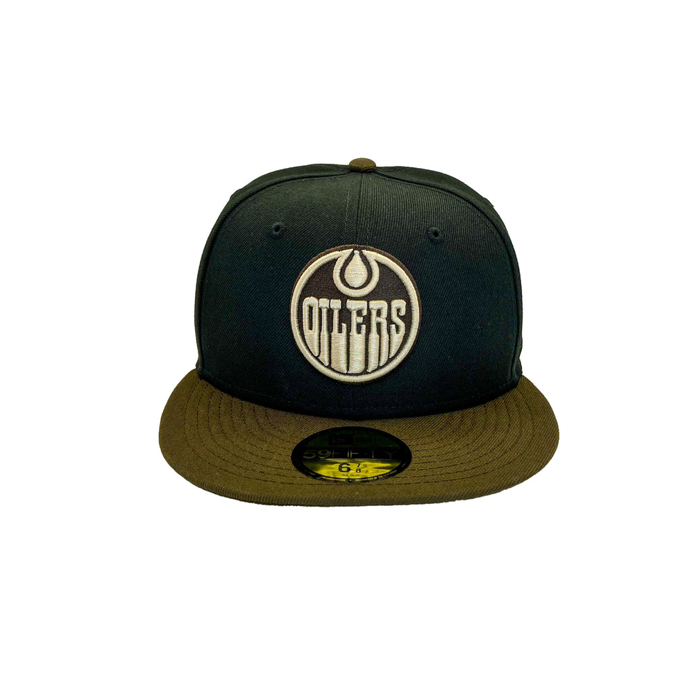 Get ready for some serious style with this Edmonton Oilers New Era Black & Brown Dark Chocolate 59FIFTY Fitted Hat. You'll be looking as sweet as a chocolate bar (pun intended) with this unique hat. Go Oilers!