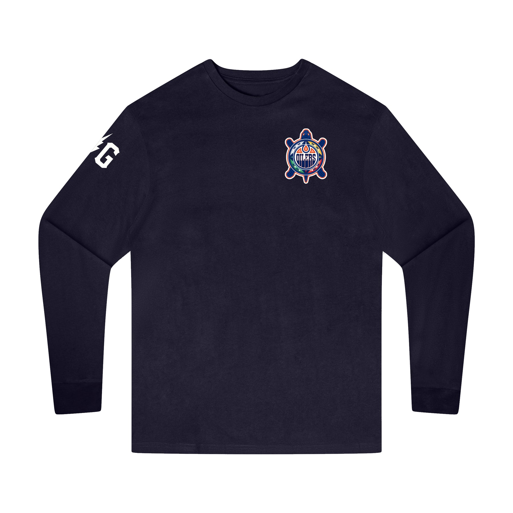 Edmonton Oilers Violent Gentlemen 2026 Turtle Island Logo Navy Long Sleeve Shirt