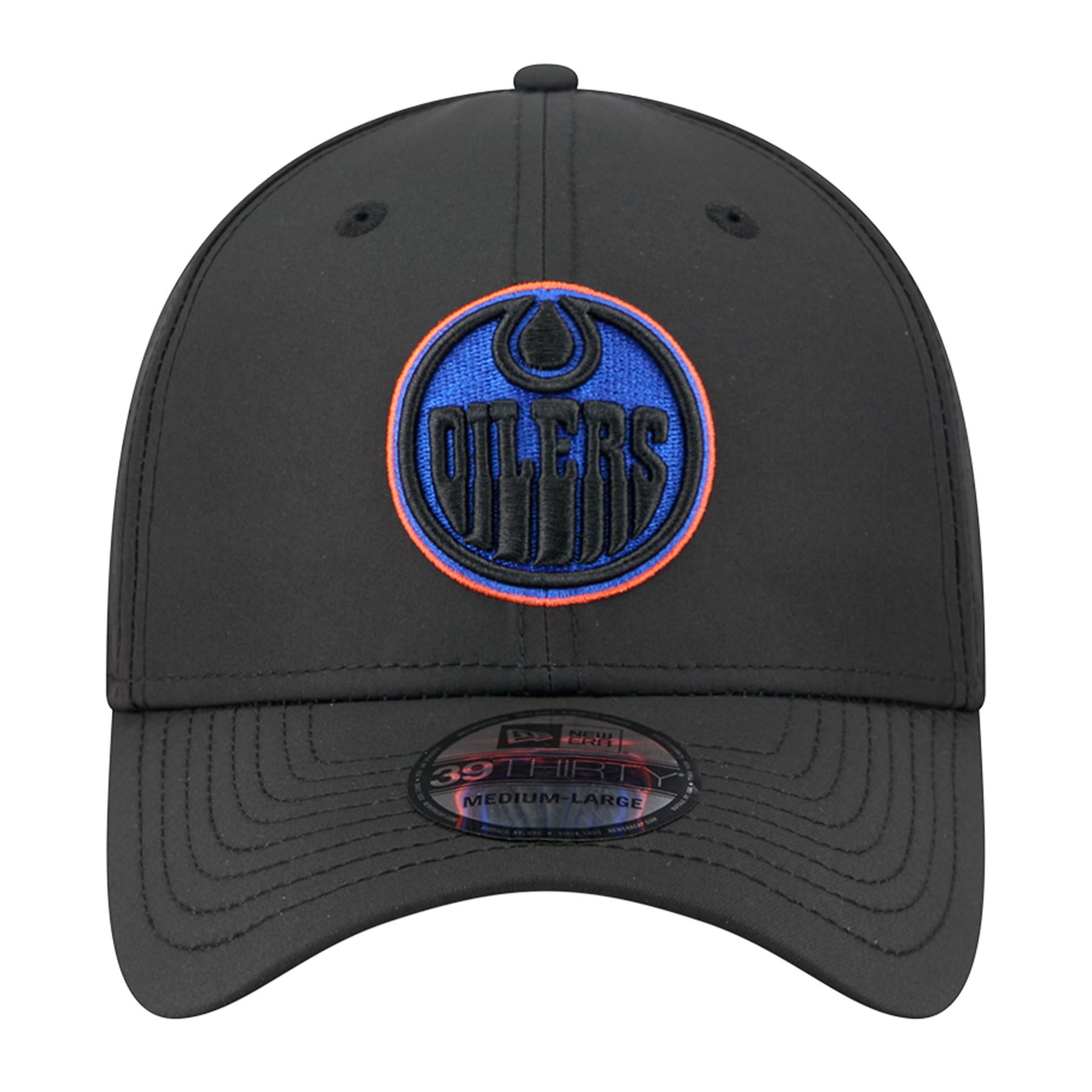Edmonton Oilers New Era Black "Night" 39THIRTY Flex Hat - Black/Blue/Orange Logo