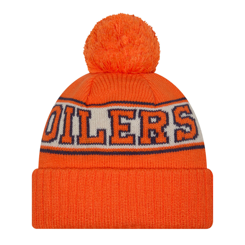 Edmonton Oilers New Era Orange Retro Throwback Wordmark Cuffed Toque w/Pom