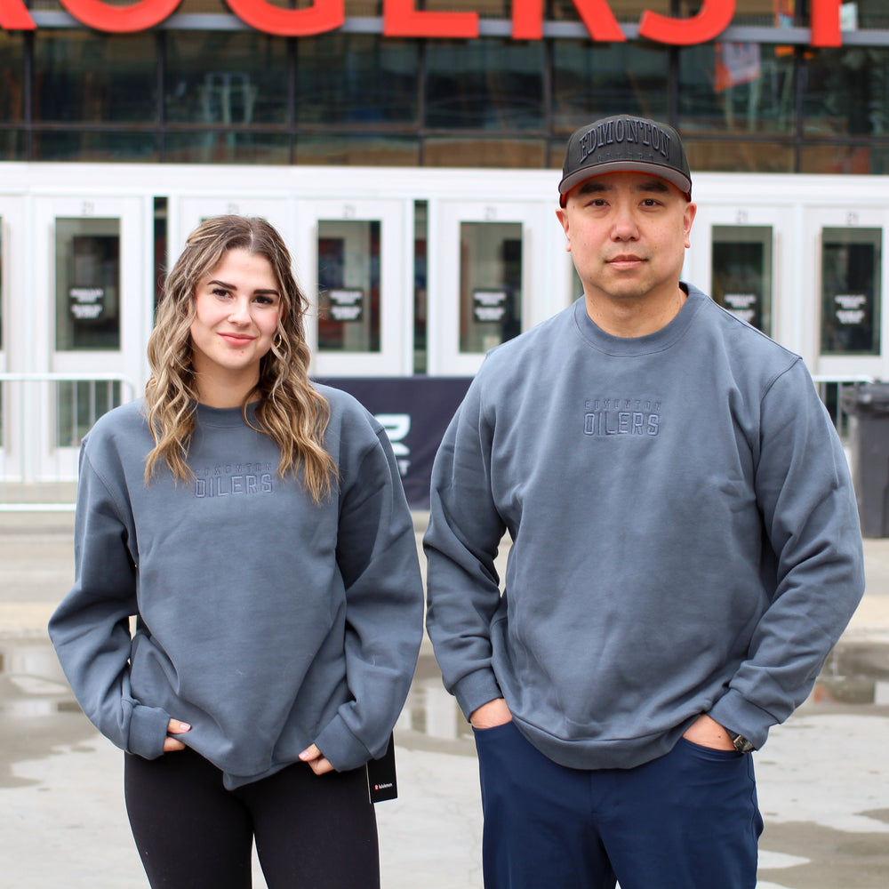 A reimagined classic. This fleece hoodie puts softness first, so you can bring comfort wherever you go. Designed to fit loosely with extra room in the chest and at the waist. This Oil Grey Steady State Crewneck features a tonal grey Oilers wordmark embroidered on the chest.