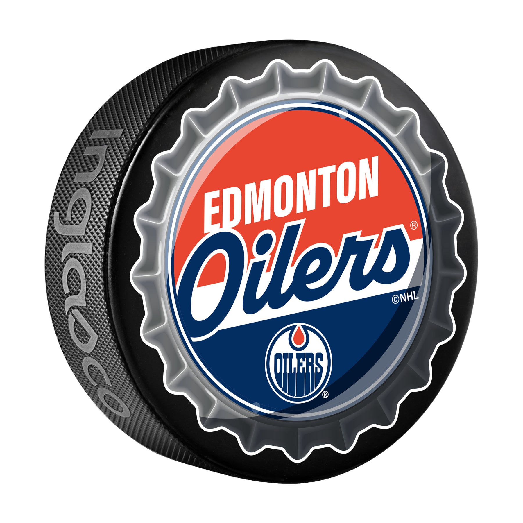 This Edmonton Oilers Home Logo Bottle Opener Puck is a must-have for any fan! Show your support for your favorite team with this one-of-a-kind souvenir puck that also functions as a bottle opener!