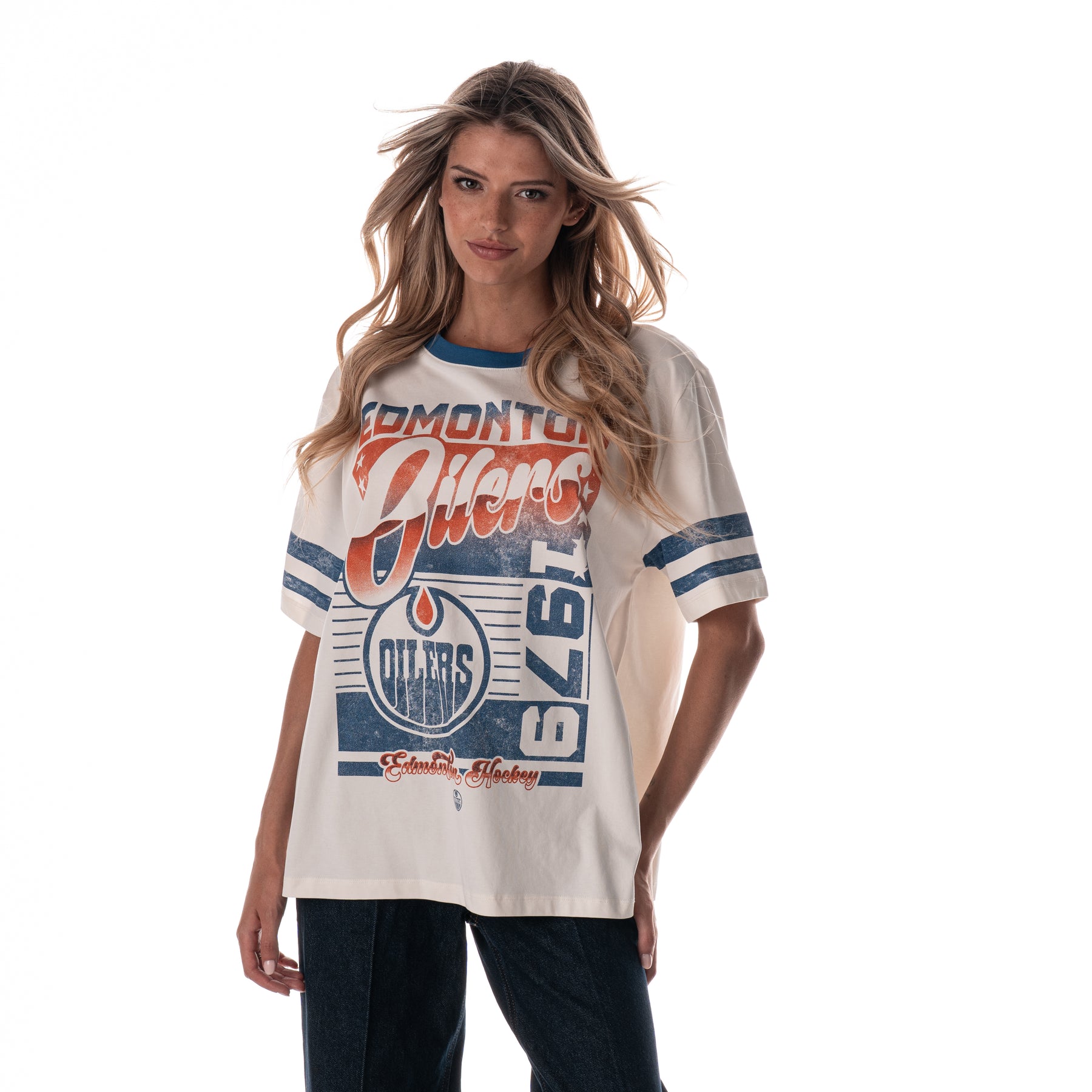 Edmonton Oilers Women's The Wild Collective Drop Shoulder Vintage Cream T-Shirt