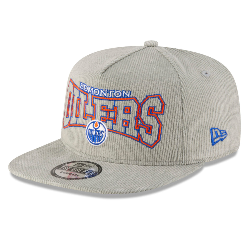 Elevate your game day look with the Edmonton Oilers New Era Grey Corduroy GOLFER Snapback Hat. Crafted with a stylish corduroy design, this hat features a snapback closure for a comfortable and adjustable fit!
