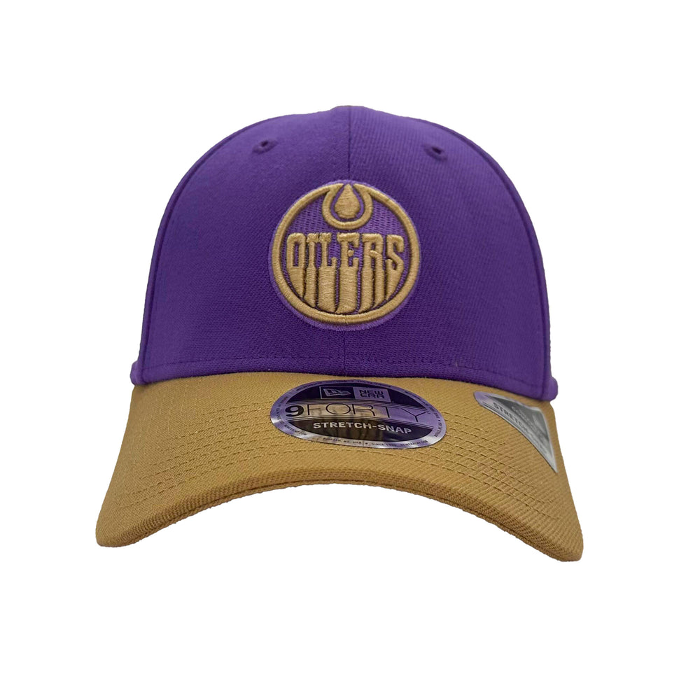 Introducing our newest addition to the Edmonton Oilers collection - the New Era Khaki & Purple Peanut Butter & Jelly 9FORTY Snapback Hat! Made with high-quality material for ultimate comfort and style. Show off your team spirit with this vibrant and unique cap.