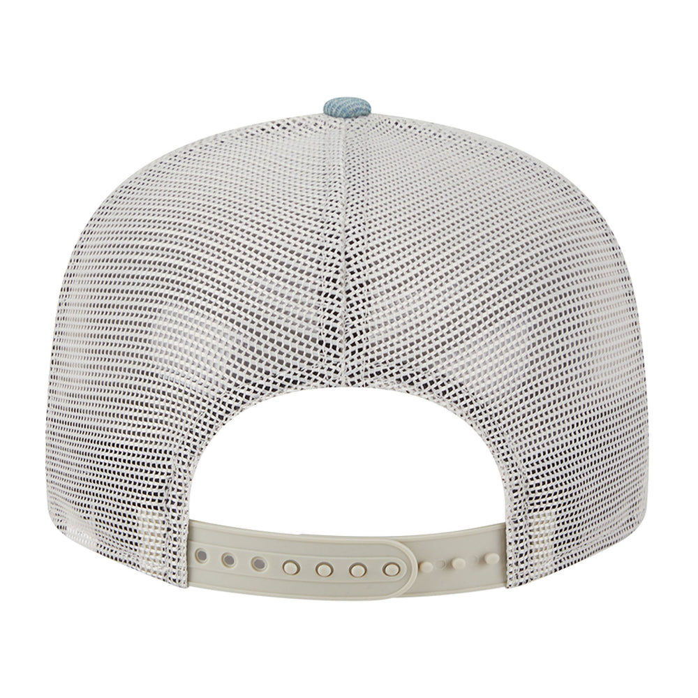 The Edmonton Oilers Light Denim 9FIFTY Mesh Snapback features an embroidered Oilers logo at the front panels with an adjustable snapback closure at the rear and a grey undervisor.