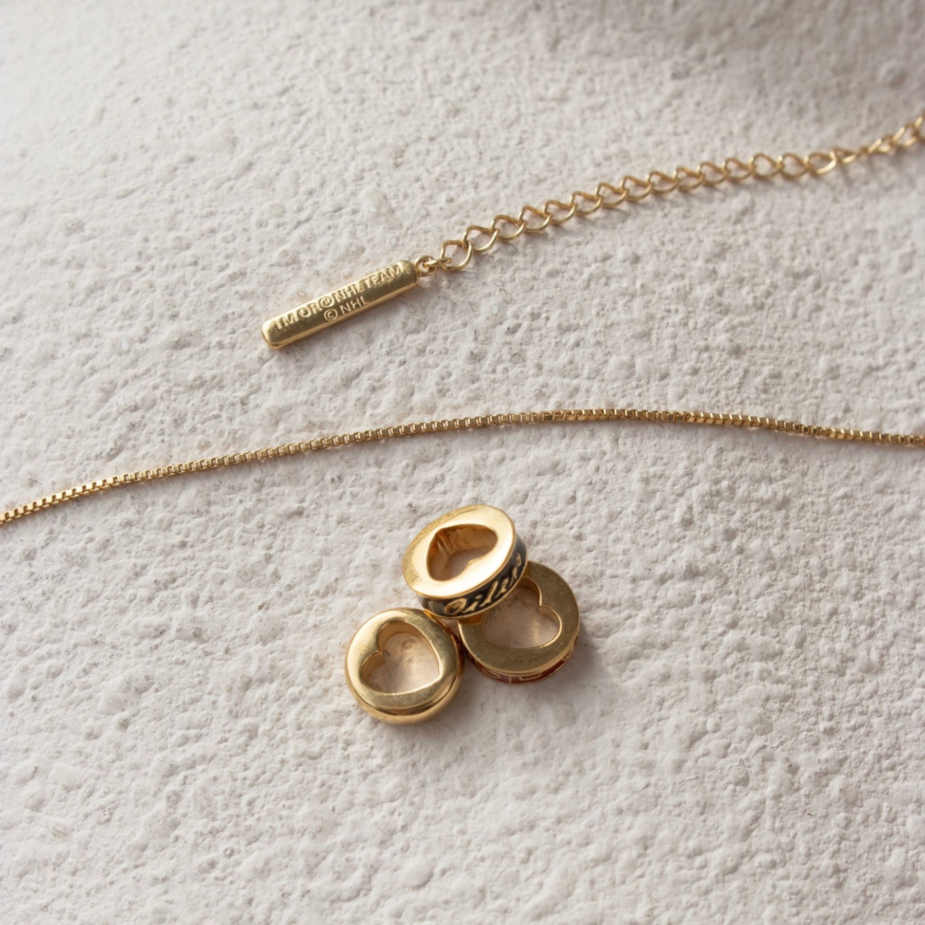 Includes three removable team pride charms. Orange Enamel: 1979 (inaugural season), Blue Enamel: Edmonton Oilers written in cursive, and a Solid Metal Spacer charm. All charms feature an interior heart detail.