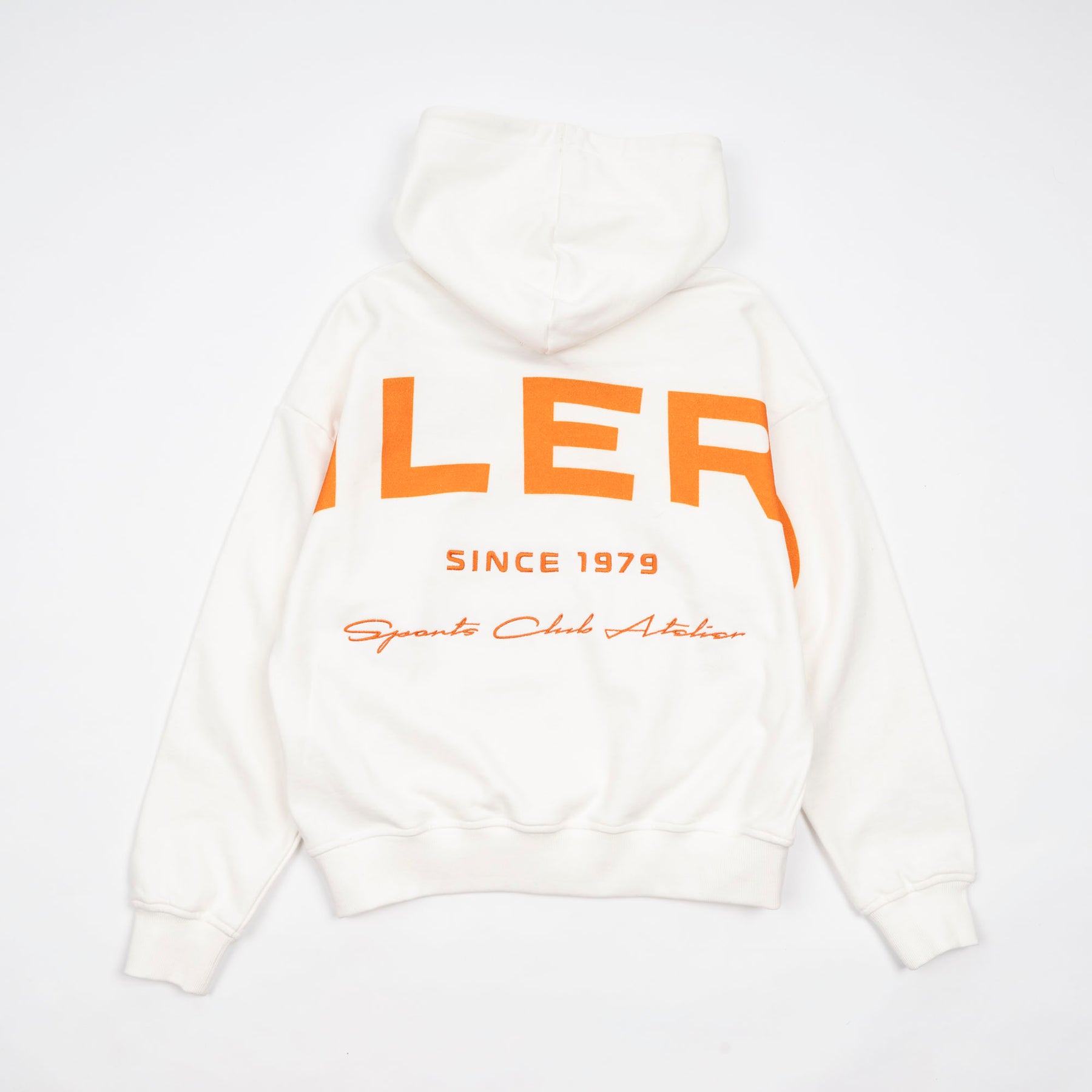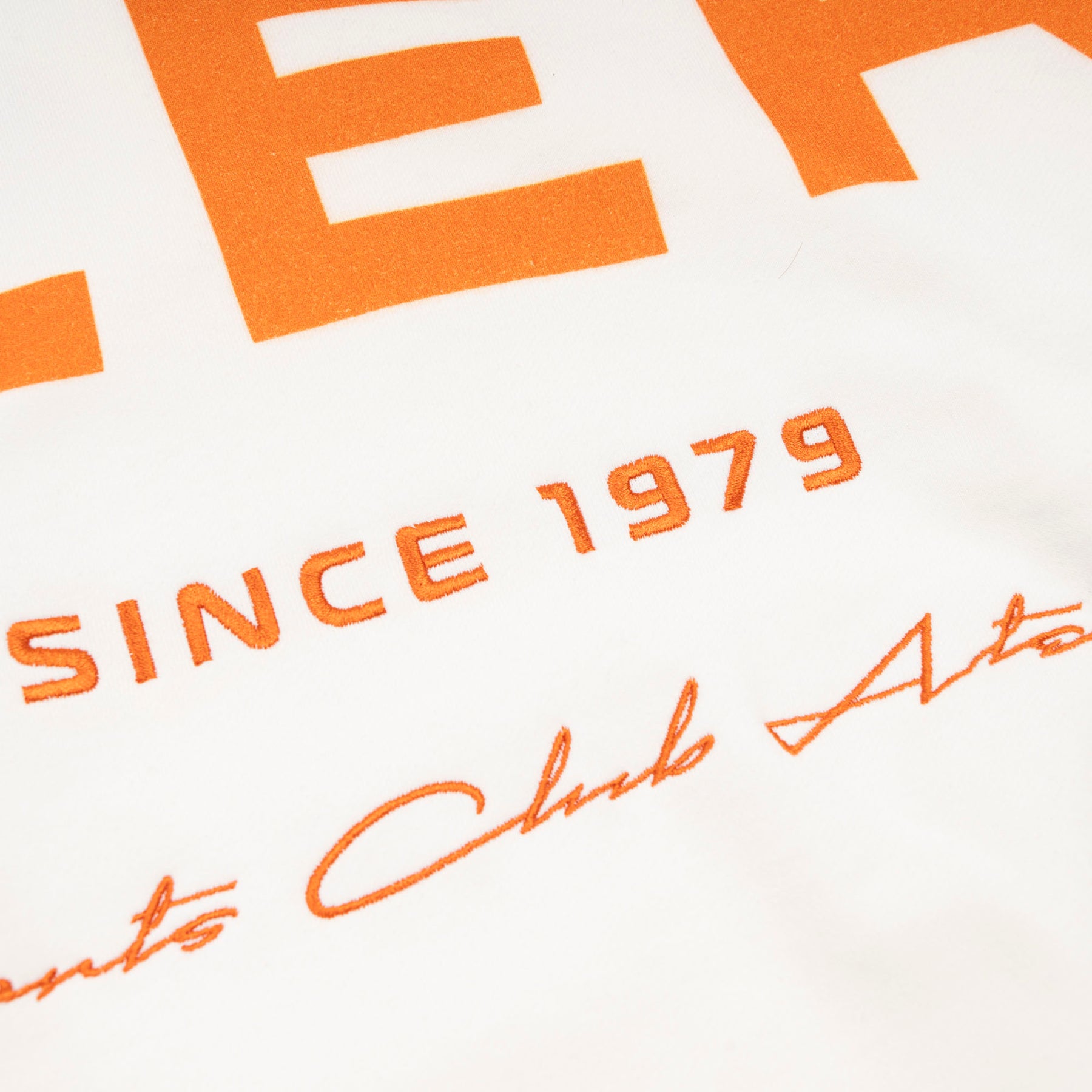 The Overdrive Hoodie channels speed, precision, and northern confidence in a clean, elevated form. Cut from premium heavyweight cotton Terry, it features large orange text running along the shoulders, a statement of motion and energy, balanced by subtle embroidered detailing at the front.