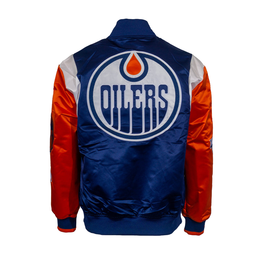 Edmonton Oilers Mitchell & Ness Navy Satin Bomber Jacket
