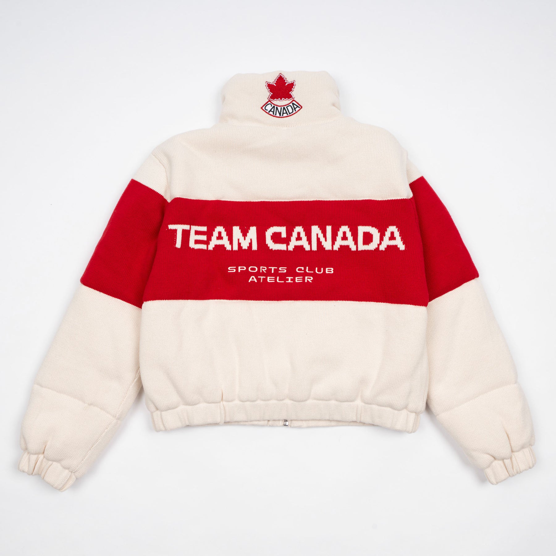 Inspired by the warmth of a cozy lodge and the bold spirit of Canada, the Après Knit high Neck Cropped Puffer is your go-to for crisp days and cool nights. Made from 100% cotton sweater knit, it blends the softness of your favorite knit with the warmth of a classic puffer.